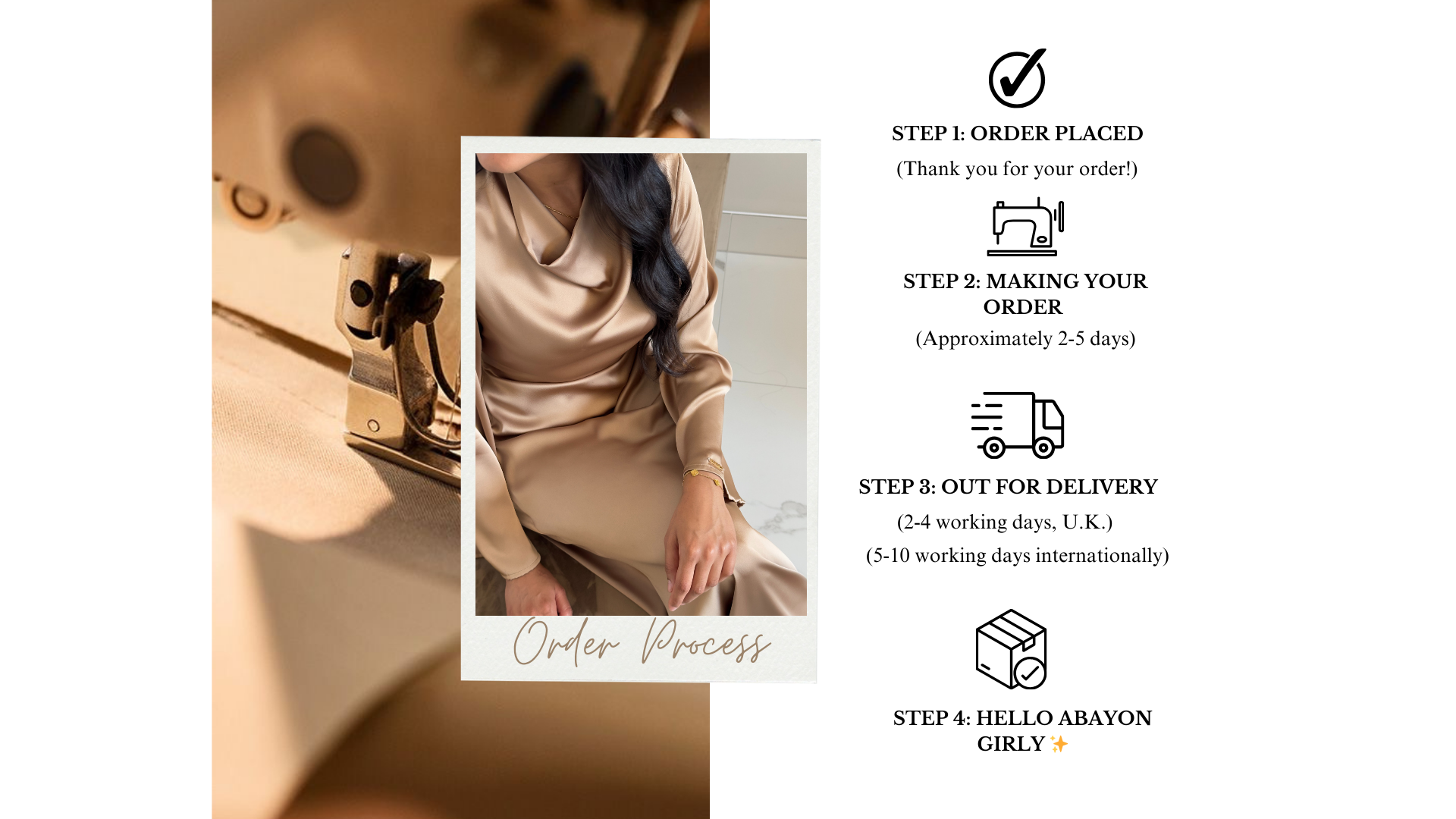 On behalf of ABAYON, 10% of our profits will be donated toward charity for Widows and Orphans around the globe through Muslim Aid.